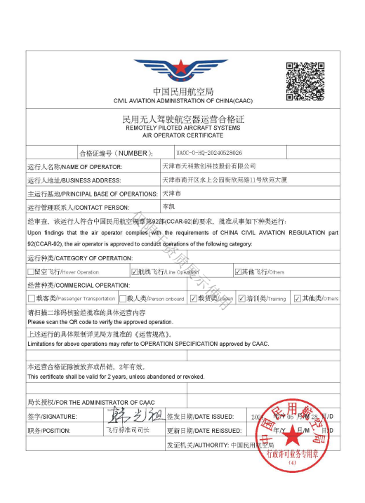 • 民用無人駕駛航空器運營合格證
